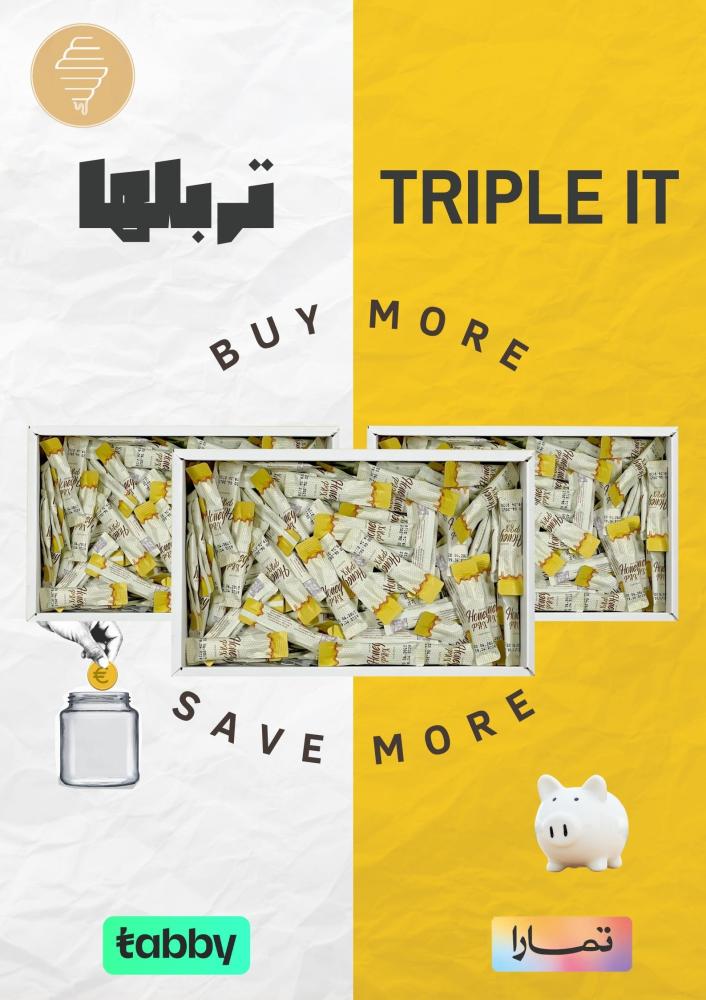 تربلها 3 كراتين من عسل الزهور الطبيعي 100% يحتوي على اكثر من "600" مغلف Honeypax , العسل الخاص بنا يتم اختبارة قبل التعبئة في مختبرات العسل المعتمدة في المملكة العربية السعودية ويتم التعبئة في معاملنا بطريقة صحية وأوتوماتيكية بالكامل وحسب اشتراطات وموصفات هيئة الغذاء والدواء في المملكة